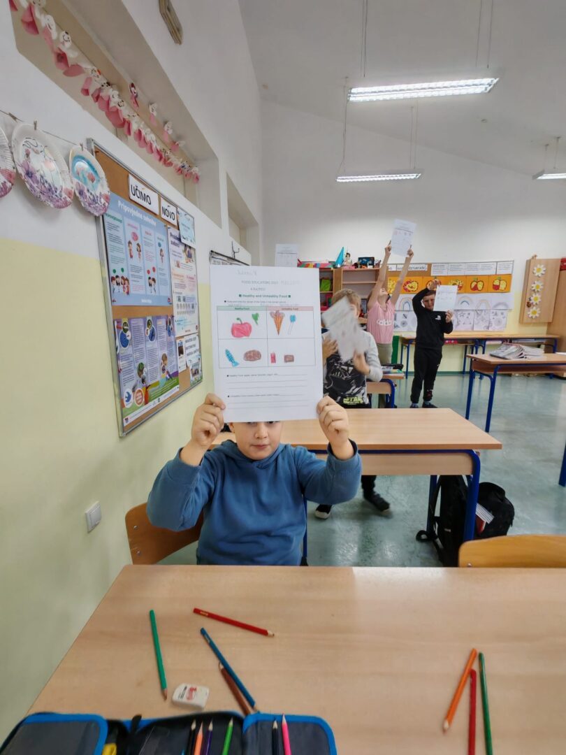 Nakon zanimljivog predavanja o zdravoj i nezdravoj prehrani, učenici su izrađivali vlastite radne listiće na tu temu te crtali svoje omiljene zdrave obroke i najukusnije proizvode. U zajedničkom radu osmislili su i popis namirnica koje ne bismo trebali često konzumirati.